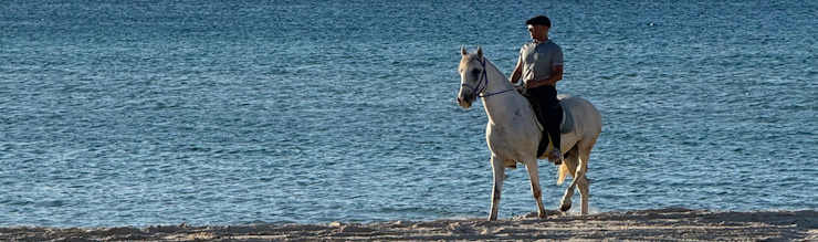 herrliche Sandwege, die sich durch den Wald schlängeln, in Richtung Mittelmeer. Das glitzernde Wasser sticht immer wieder zwischen den Bäumen hervor, bis sich der Strand von Ain Damous zeigt. Dieser Küstenabschnitt ist kaum zu Fuß erreichbar und bleibt dadurch nahezu unberührt. An diesem versteckten Ort genießen wir im Trab und Galopp entlang des klaren Wassers wundervolle Ausblicke. Weiterritt ins Inland über Felder, vorbei an einzelnen Bauernhöfen und entlang einer uralten römischen Straße. Bizerte war zur römischen Zeit ein besonders wertvoller, strategischer Punkt für die Römer, welches wir in unserer Reitwoche des Öfteren feststellen können. Auf dem Weg zurück zur Ranch laden die weiten, offenen Ebenen zu flotten Galoppaden ein. Am Abend gehen wir gemeinsam essen und lassen den Tag wunderbar ausklingen.