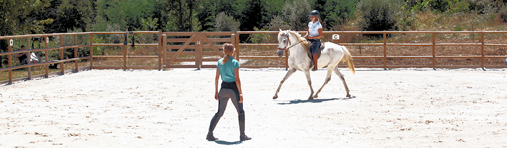 Pferde, Reitprogramm: Ca. 10 Pferde, überwiegend Lusitanos oder Lusitanokreuzungen (ca. 150-165 cm), Englische und Baumlose Sättel, überwiegend gebisslose Zäumung. Reitplatz (ca. 20x40 m). Deutsch- bzw. englischsprachige Reitlehrer. Unterrichtseinheit (max. 2 Reiter) 45 Min., Ausritte 60 Min., nach Absprache kann auch ein Halbtagesritt (ca. 3 Std., gegen Entgelt) zugebucht werden. Ausrüstung: Tipps, Reitkappenpflicht. Intensivkurs Horsemanship Reiterfahrung: ![]() -![]() ![]() ![]() . Sie sollten bereits über Pferdeerfahrung verfügen und sattelfest in allen Gangarten für Ausritte im gemäßigtem Tempo sein. » ErklärungenWir lernen viel über die Bedürfnisse und das Lernverhalten von Pferden, wie wir mit ihnen in einen Dialog treten und eine klare Kommunikation, die auf gegenseitigem Respekt und Vertrauen beruht, aufbauen können. Wir arbeiten zuerst am Boden mit den Pferden und übertragen das Gelernte anschließend in den Sattel. Unser Fokus liegt auf einer feinen und klaren Kommunikation und Hilfengebung. Während der Freiarbeit testen und verfeinern wir unsere Kommunikation. Abgerundet wird das Programm mit entspannten Ausritten zum nahegelegenen Fluss. 5 Kurstage mit jeweils ca. 6-stündigem Programm (Kombination aus Theorie, Bodenarbeit, Freiarbeit, Reitunterricht, Ausritten). Wünsch-dir-was-Woche Reiterfahrung: -![]() ![]() ![]() . Unabhängig davon, ob Sie keine Pferde-/Reiterfahrung haben oder bereits sehr erfahrene Reiter sind, sind Sie hier richtig, wenn Sie den Umgang mit den Freizeitpartner Pferd erlernen und vertiefen möchten. » ErklärungenWährend unseres Aufenthaltes haben wir die Möglichkeit unsere Wunschwoche zusammen zu stellen. Wahlweise können wir die feine Kommunikation mit Pferden in Form von Bodenarbeitsstunden lernen bzw. vertiefen und diese dann auch während der Arbeit mit einem freilaufenden Pferd testen und verfeinern. Alternativ schwingen wir uns in den Sattel und lernen auf pferde- und menschenfreundliche Art und Weise zu reiten bzw. verfeinern unseren Sitz. Wer sicher in allen Gangarten ist, kann auch Ausritte zum nah gelegenen Fluss Criz unternehmen. 5 Reittage mit insgesamt 10 Reiteinheiten. |